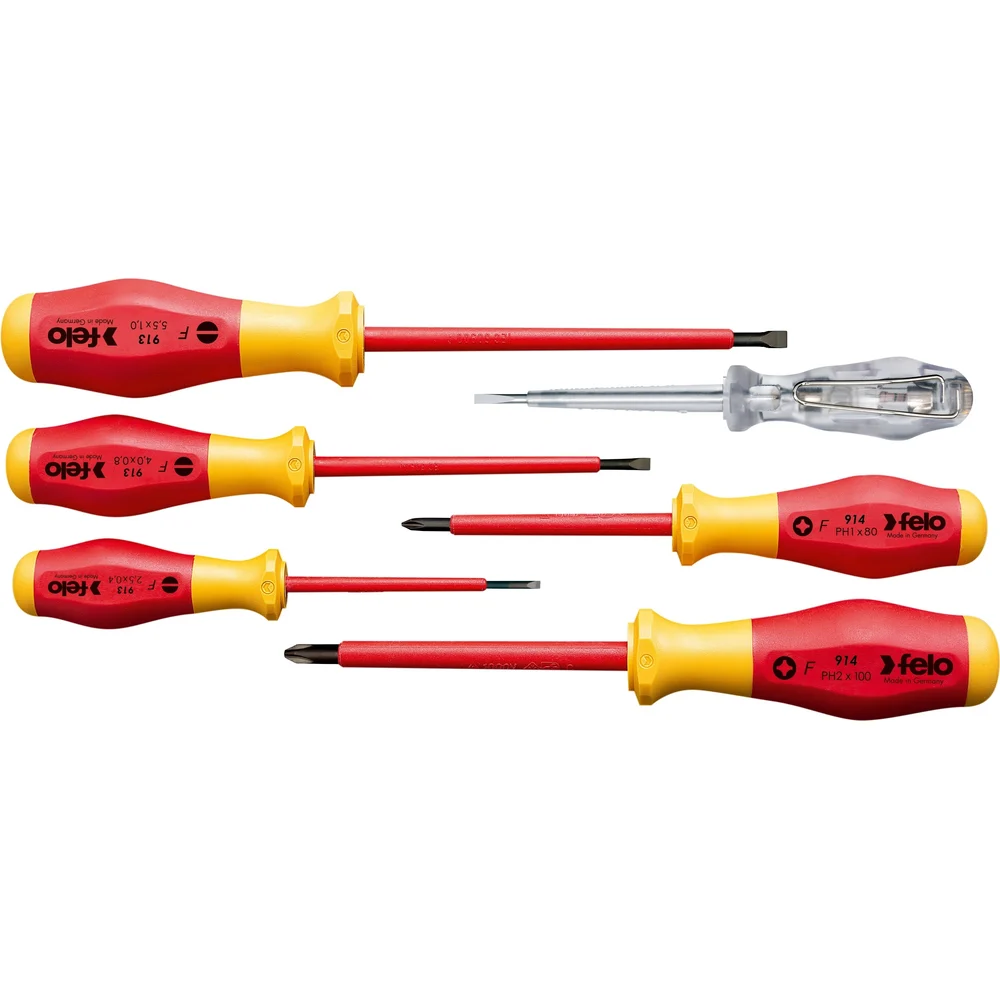 Набор диэлектрических отверток Felo SL/PZ, отвертка тестер сети, 6 шт 91396198