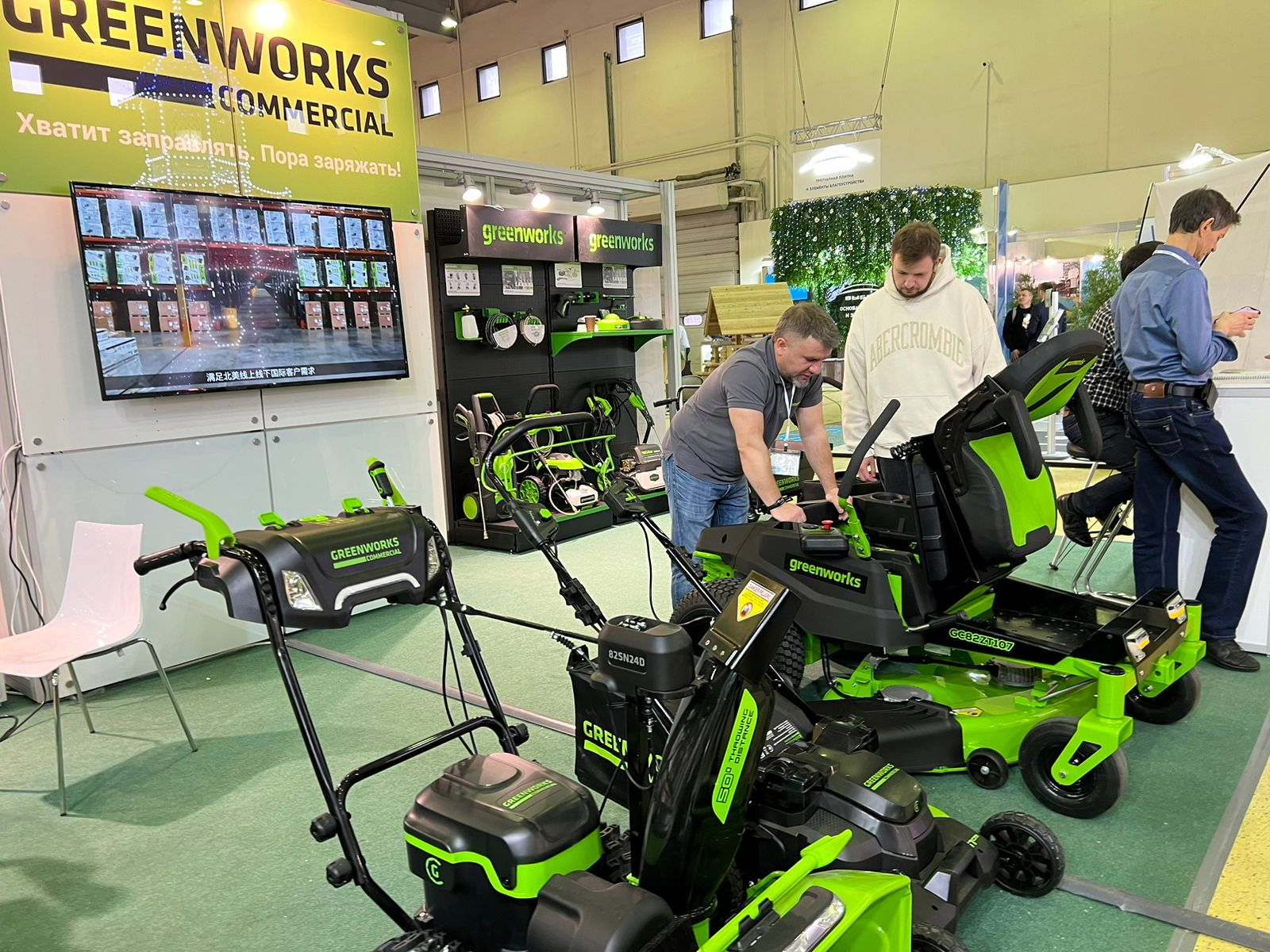 Главная задача Greenworks на выставке – установить контакты с лицами, принимающими решение о закупках профессиональной техники для садово-паркового хозяйства и показать превосходство аккумуляторной техники над бензиновыми аналогами. Greenworks уже является безоговорочным лидером рынка аккумуляторной садовой техники в любительском сегменте (24V-40V-60V), теперь Компания планирует активно наращивать продажи в профессиональном сегменте, где традиционно преобладает бензиновая техника, а аккумуляторные аналоги платформы Greenworks Commercial 82V отсутствуют.
